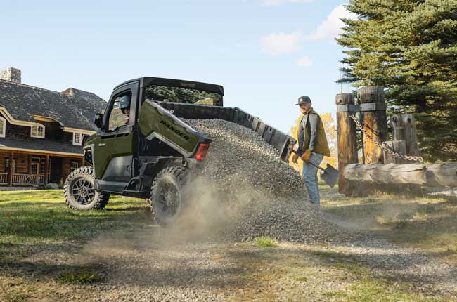 - A box capacity up to 1,500-pounds and 3,500-pound towing capacity to maximize productivity by saving time on fewer trips and handling heavier loads and is ideal for demanding tasks such as big game hunting and large-scale farm and ranch work.