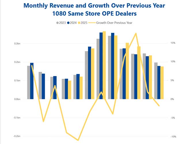 Following strong sales reports in June, July and August this year, OPE dealer activity slowed dramatically in September, compared to 2024 and 2023 sales data.